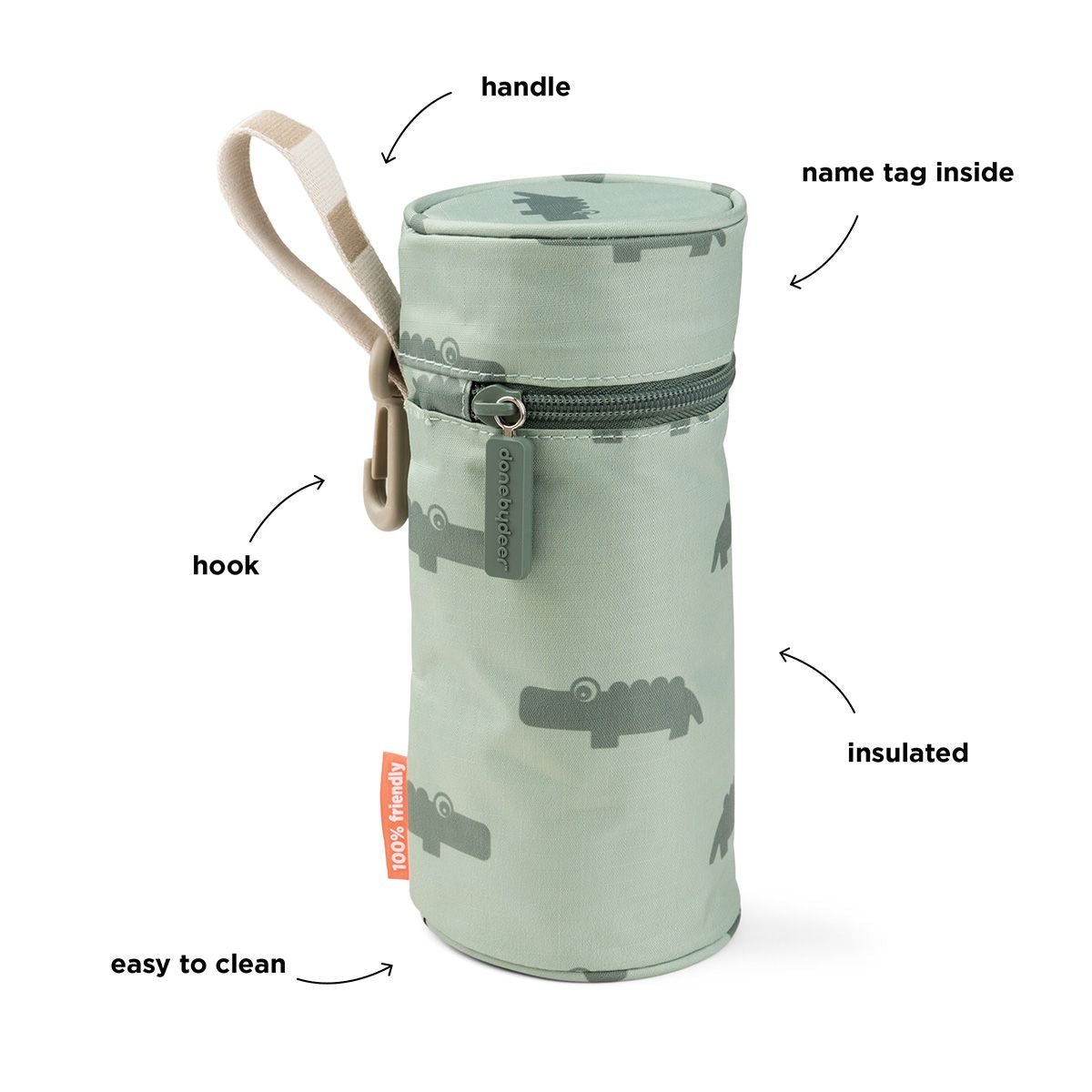 Vaikiškas izoterminis buteliuko laikiklis išlaiko jūsų vaiko gėrimą vėsų arba šiltą. Viduje esantis izoliacinis audinys išlaiko skysčius norimoje temperatūroje valandas. Done by Deer buteliai puikiai telpa butelių laikiklyje.