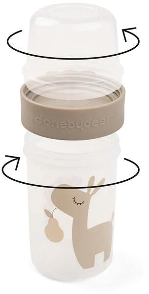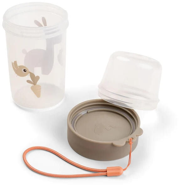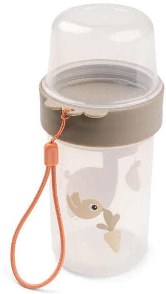 Apatinę hermetiško užkandžių talpyklos pusę naudokite daržovių lazdelėms arba vaisių gabalėliams, o viršutinę pusę – panardinimams ar uogoms. Talpykloje yra patogus nešiojimo dirželis, ją galima plauti mikrobangų krosnelėje ir plauti indaplovėje.