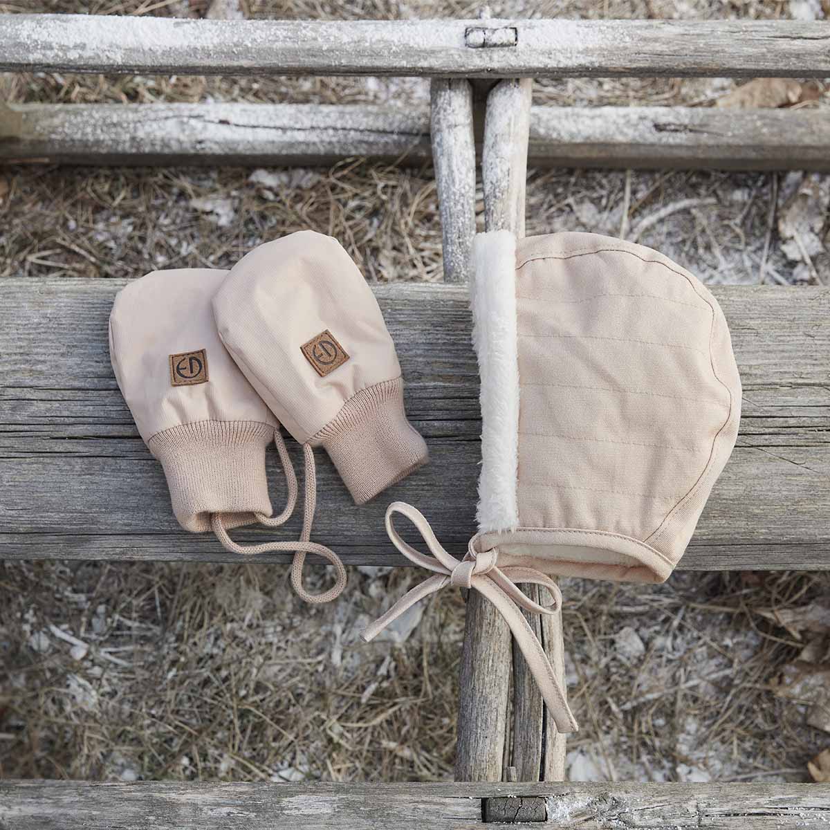Šios kumštinės pirštinės yra dviejų dydžių. Mažesnis dydis yra be nykščio ir turi medvilninį raištelį tarp dviejų kumštinių pirštinių, užtikrinančių, kad jos nepasimes, ir didelį medvilninį šonelį, kuris padeda jas laikyti.