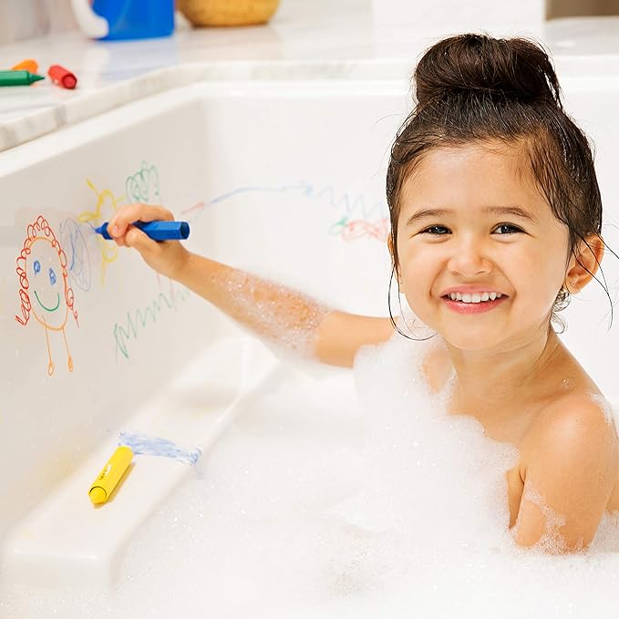 Ne toksiškas. 5 vonios kreidelės, skatinančios aktyviai žaisti. Skatina kūrybiškumą, spalvų atpažinimą ir vaizduotės žaidimą. Puikiai tinka mažoms rankutėms suimti ir laikyti. Pieškite ant plytelių/porceliano ar kitų lygių paviršių. Lengvai nuplaunamos nuo vonios sienelių drėgna šluoste arba kempine. Rinkinyje yra 5 spalvotos kreidelės - geltona, oranžinė, raudona, žalia ir mėlyna. 36+ mėn.