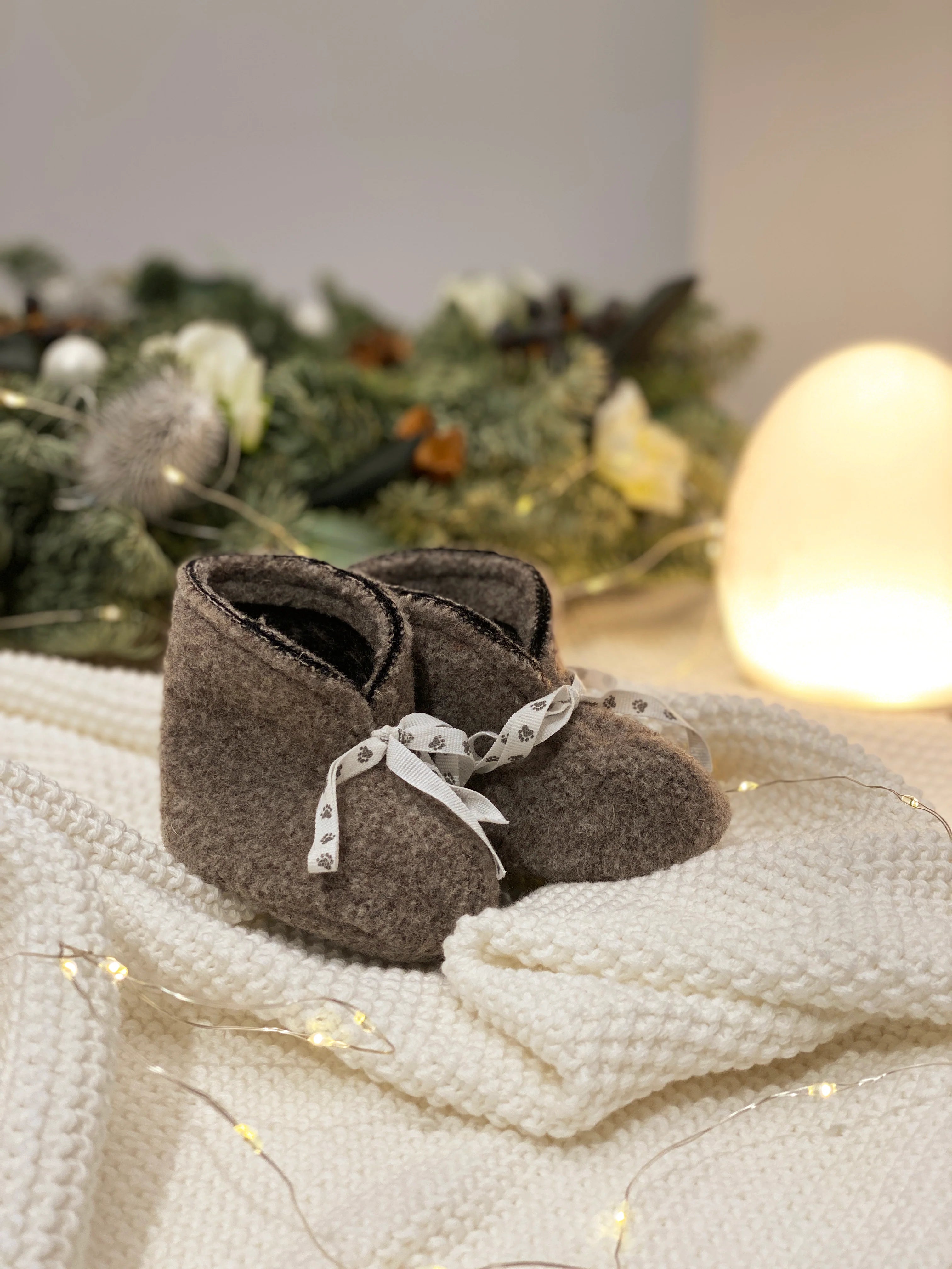 Pagaminti su meile iš natūralių, orui pralaidžių medžiagų. Vilna ir grikių pluoštas, kad Jūsų kūdikio kojytėms visada būtų šilta ir patogu.