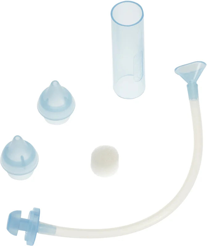 Įdėkite vieną siurbtuko galą sau į burną, o kitą įkiškite į kūdikio nosį. Traukdami orą į save išsiurbkite iš vaiko nosies gleives. Pakartokite procedūrą su kita šnerve. Panaudoję, aspiratorių kruopščiai nuplaukite. Galima sterilizuoti garų sterilizatoriuje.