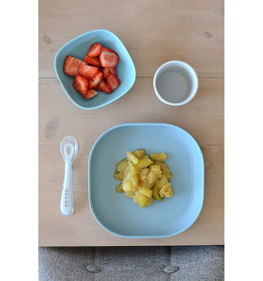 Tai patogus rinkinukas, susidedantis iš itin kokybiškų, silikoninių, lengvai prie švaraus paviršiaus prilimpančių dubenėlio ir lėkštutės, nedūžtančio puodelio ir ergonominio silikoninio šaukštelio su specialiai vyresniems vaikams (nuo 8 mėn.) sukurtu antgaliu ir rankena, įgalinančia juos valgyti patiems. Šiame rinkinyje yra viskas, ko reikia, kad pradėti vaiko primaitinimą maistu!