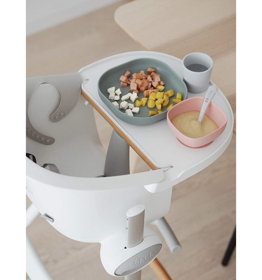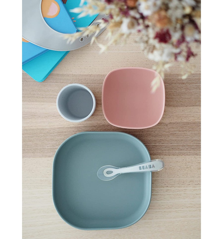 Tai patogus rinkinukas, susidedantis iš itin kokybiškų, silikoninių, lengvai prie švaraus paviršiaus prilimpančių dubenėlio ir lėkštutės, nedūžtančio puodelio ir ergonominio silikoninio šaukštelio su specialiai vyresniems vaikams (nuo 8 mėn.) sukurtu antgaliu ir rankena, įgalinančia juos valgyti patiems. Šiame rinkinyje yra viskas, ko reikia, kad pradėti vaiko primaitinimą maistu!