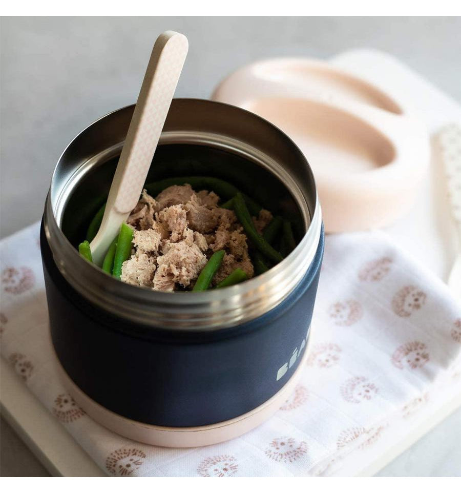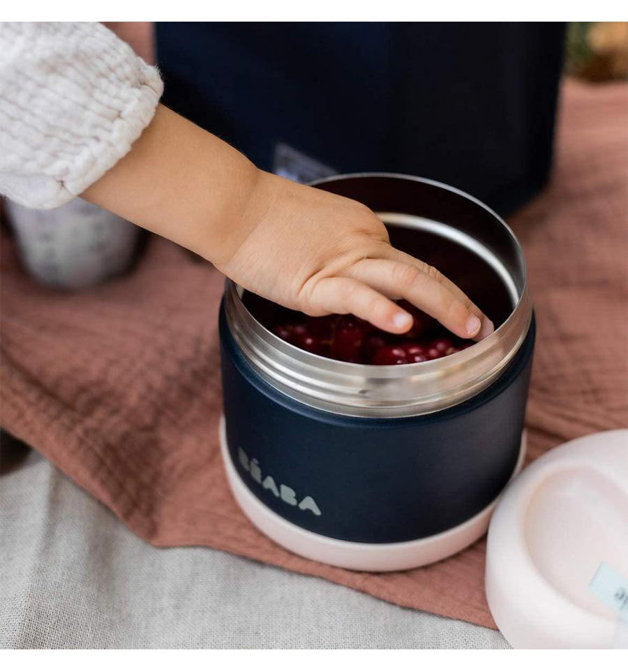 Tai stilingas, sandarus maisto konteineris, pagamintas iš dvigubos plieno sienelės, todėl išlaiko šilumą iki 6 valandų, o šaltus produktus gali palaikyti net iki 7 valandų. Šis konteineris neįgeria kvapų ir skonių, yra paprastai transportuojamas, todėl ypač patogus pasiimti, kai einate su su mažyliu pasivaikščioti lauke arba vykstate į keliones. Šiltas maistas visada po ranka!