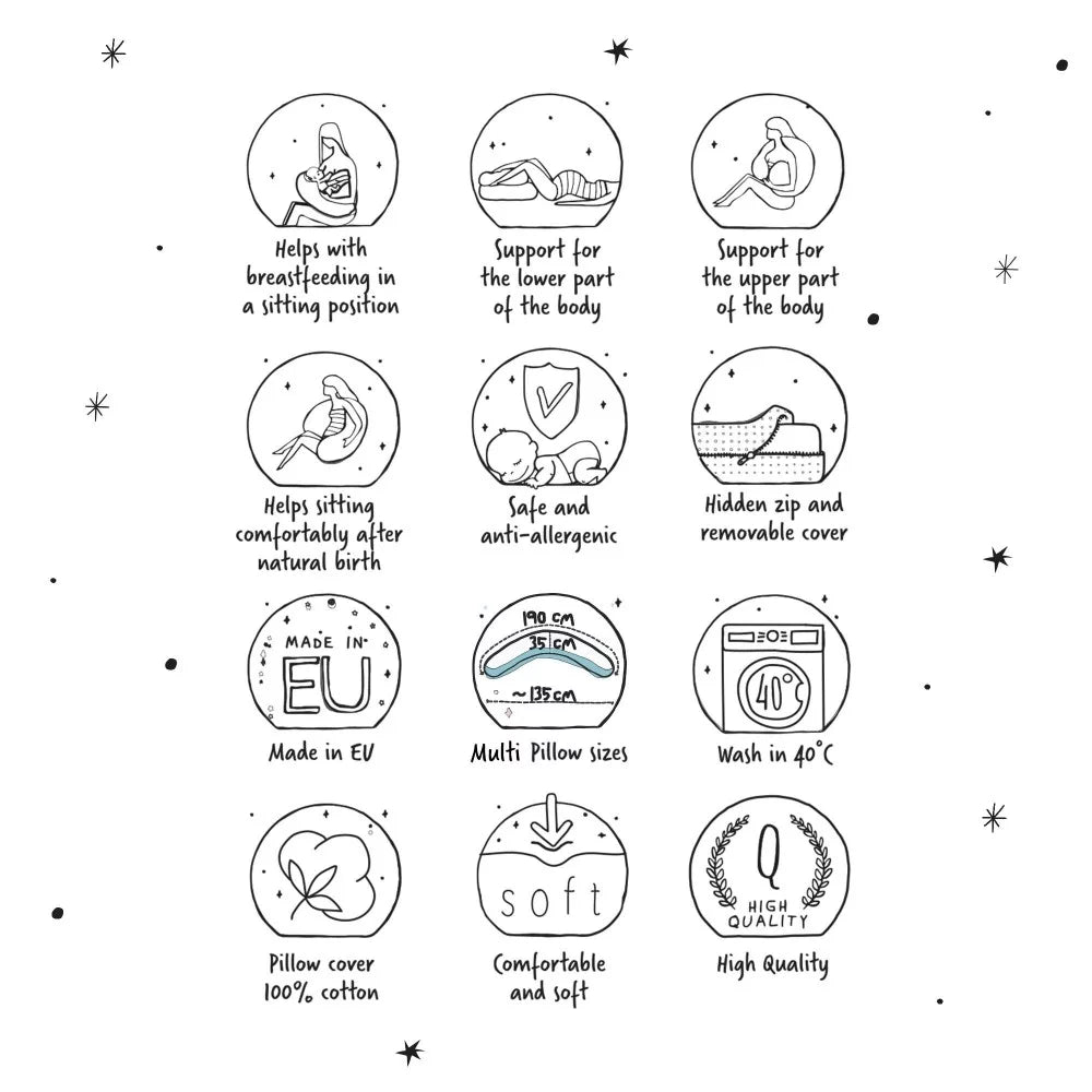 Mažyliui išvydus pasaulį, pagalvė palengvina žindymą – padeda patogiai įsitaisyti norimoje padėtyje ir sumažinti nugaros įtampą.