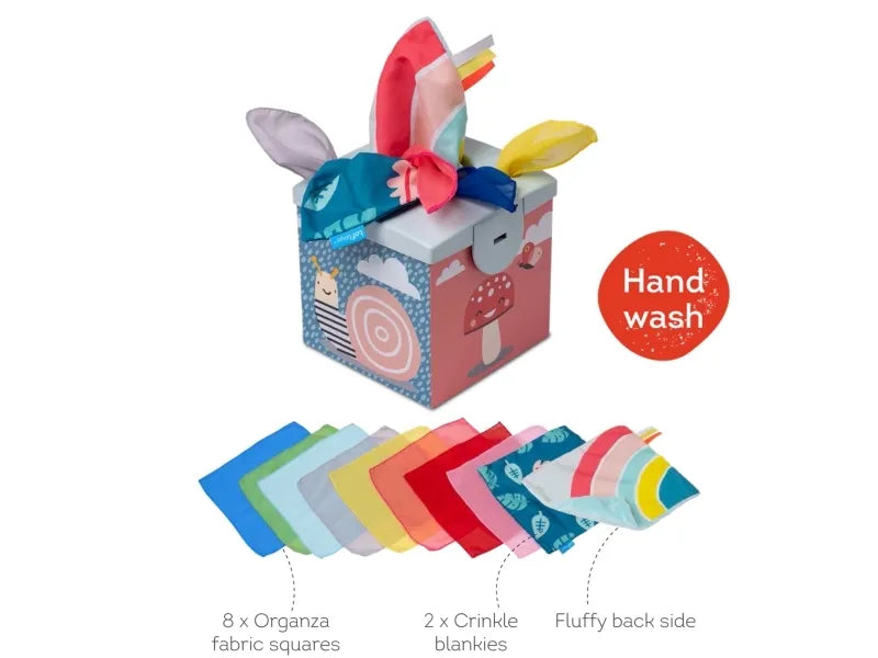 Žaisdami su „Wonder Tissue Box“ kūdikis sužino apie konteinerių ištuštinimą ir vėliau užpildymą. Ši užduotis apima tiek motorinius, tiek pažinimo įgūdžius ir užtrunka ne vienerius metus, kad ją būtų galima visiškai įvaldyti. Minkšti šilkiniai audiniai puikiai tinka mokytis spalvų, skaičiuoti ir tobulinti motorinius bei jutimo įgūdžius.