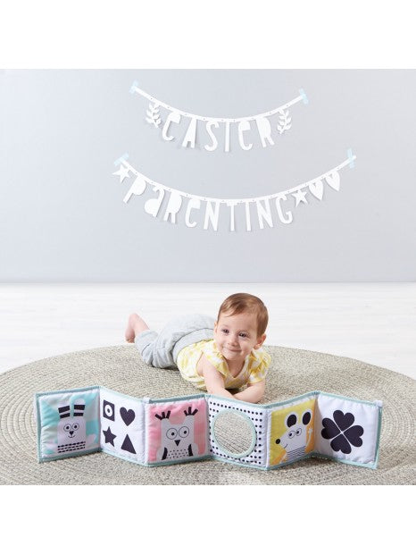 Tinka dviem raidos etapams. Labai kontrastinga knygelės pusė gali būti naudojama pirmaisiais gyvenimo mėnesiais, kad padėtų lavinti kūdikio pojūčius ir emocinį intelektą, o kita pusė kūdikiui nuo trijų mėnesių padeda tobulinti smulkiuosius motorinius įgūdžius naudojant patogų žvaigždės formos kramtuką su mėnulio formos kišenėle, žiūrint į skėtį ir susiraukšlėjusias bures. Tai yra puiki priemonė skatinti kūdikį gulėti ant pilvuko.