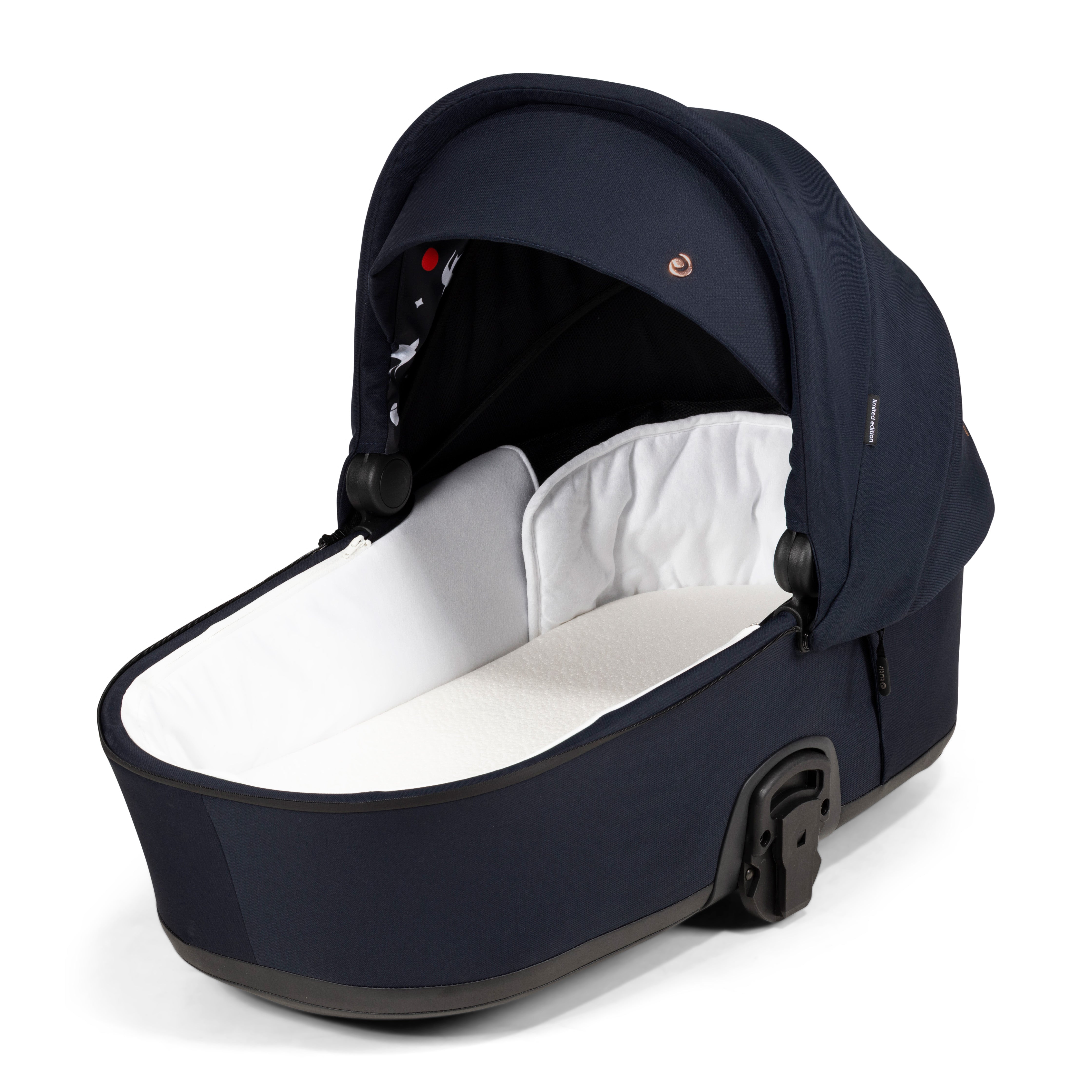 Matmenys: Lopšio vidiniai matmenys / svoris: 81×39×58 cm / 2,6 kg Sėdimosios dalies vidiniai matmenys / svoris: 92×33×52 cm / 3,3 kg Važiuoklės svoris su ratais: 7,5 kg Sulankstytos važiuoklės matmenys: 75x61×40,5 cm |