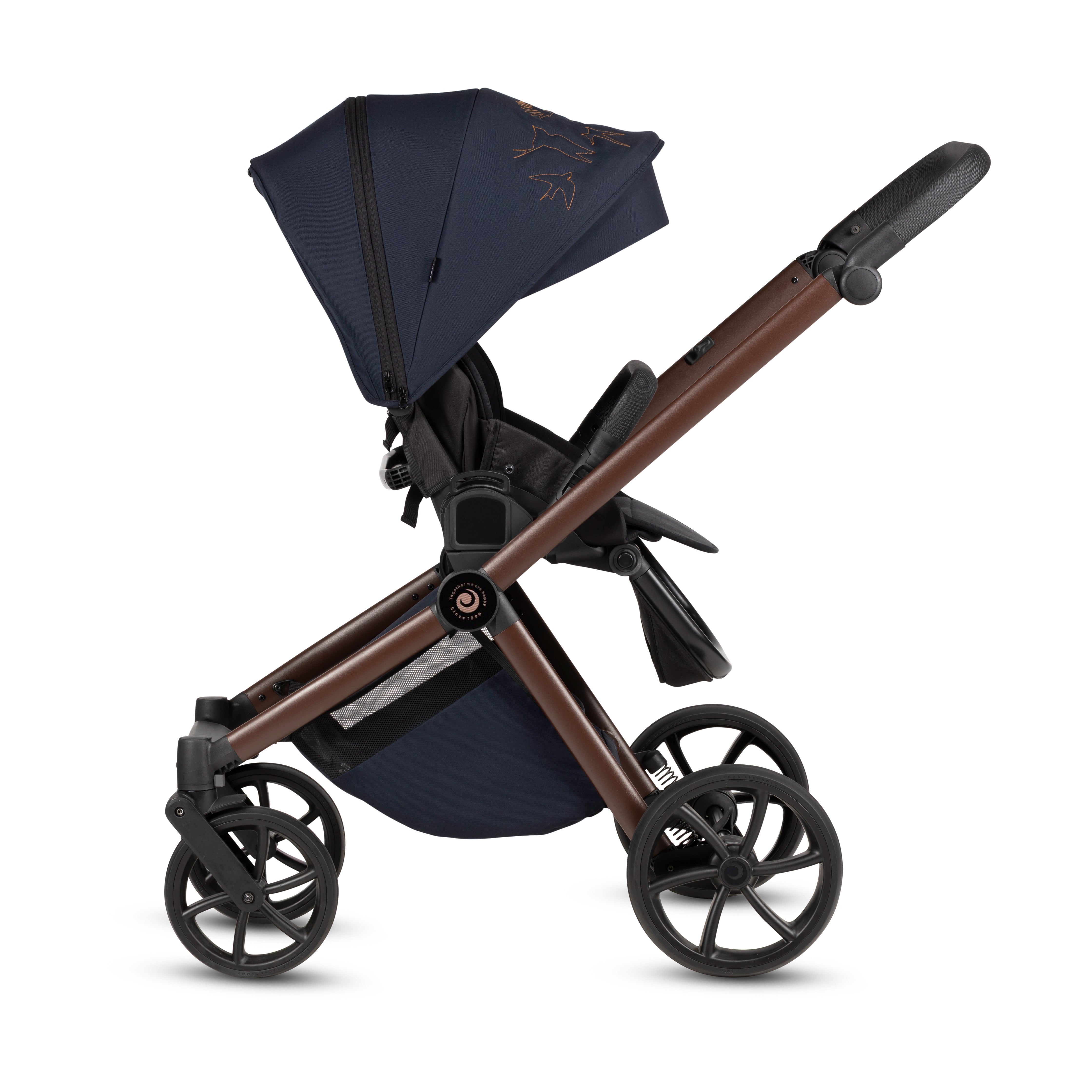 Rankena reguliuojama net 11 pozicijų, todėl patogi tiek aukštiems, tiek žemesniems tėvams. Padengta patvaria ir malonia liesti eko oda. -
