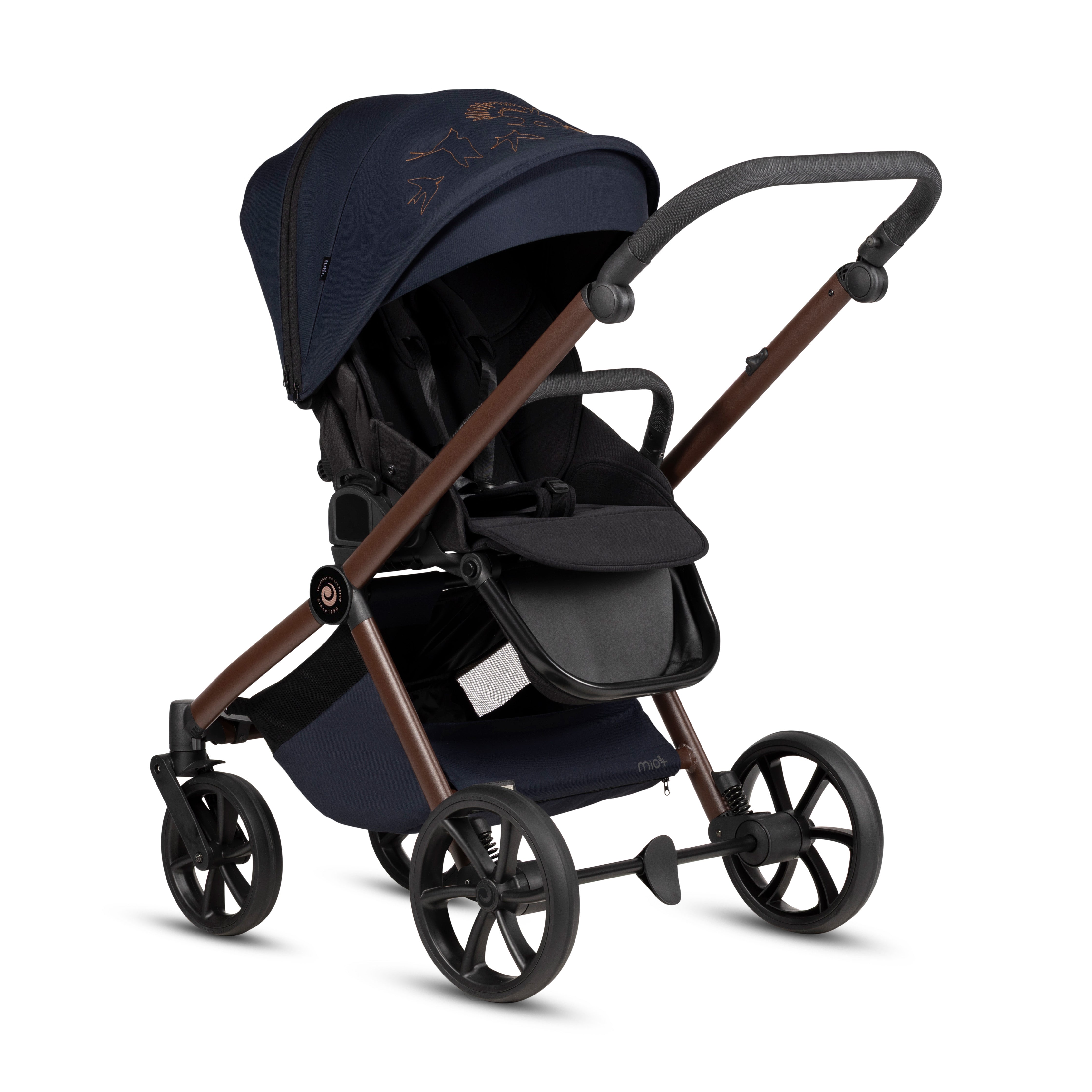 Apgalvotos detalės, tokios kaip reguliuojama ergonomiška rankena iš eko odos, talpus daiktų krepšys ir kompaktiška sulankstymo sistema, užtikrina patogų transportavimą ir laikymą. Nuo oro sąlygų apsaugantis stogelis, aukštos kokybės audiniai ir elegantiški akcentai suteikia Mio 3+ išskirtinį stilių – jis toks pat madingas, kaip ir funkcionalus. Nesvarbu, ar tai kasdieniai reikalai, ar ypatingi šeimos nuotykiai – Mio 3+ taps patikimu palydovu, palengvinančiu tėvystę ir suteikiančiu daugiau patogumo bei elegancijos.