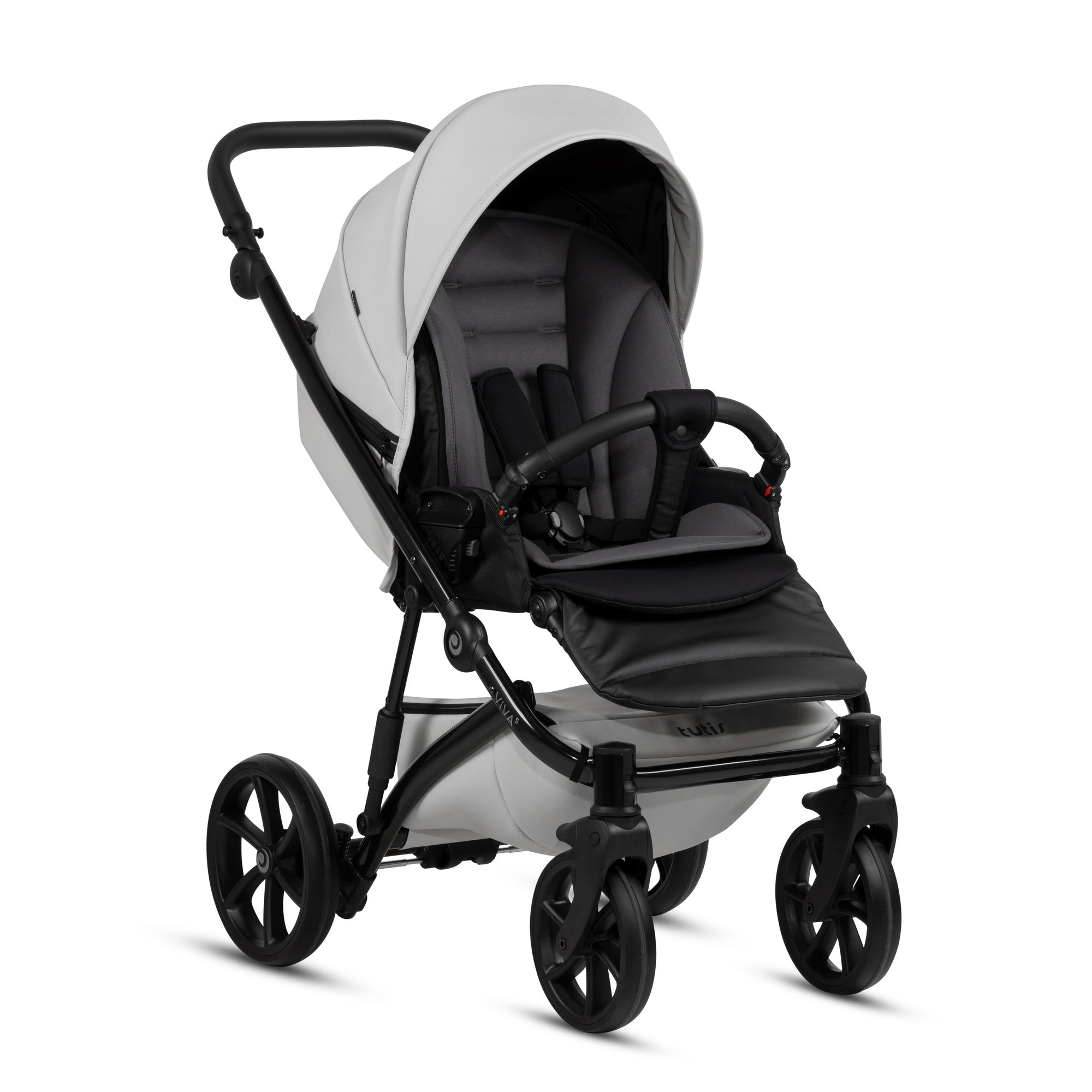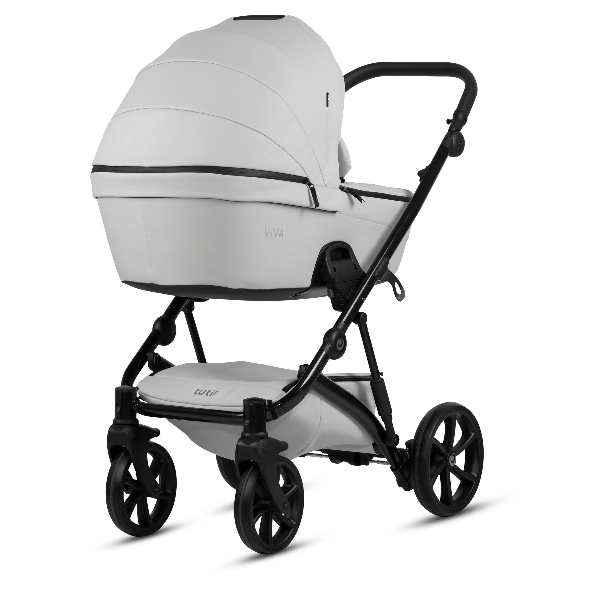 Naujoji Viva 5+ važiuoklė išsiskiria savo manevringumu bei stabilumu. Važiuoklės rėmo struktūra leidžia atnaujintam Tutis Viva 5+ vežimėliui būti kompaktiškesniam, išlaikant išskirtines lengvumo, tvirtumo charakteristikas.