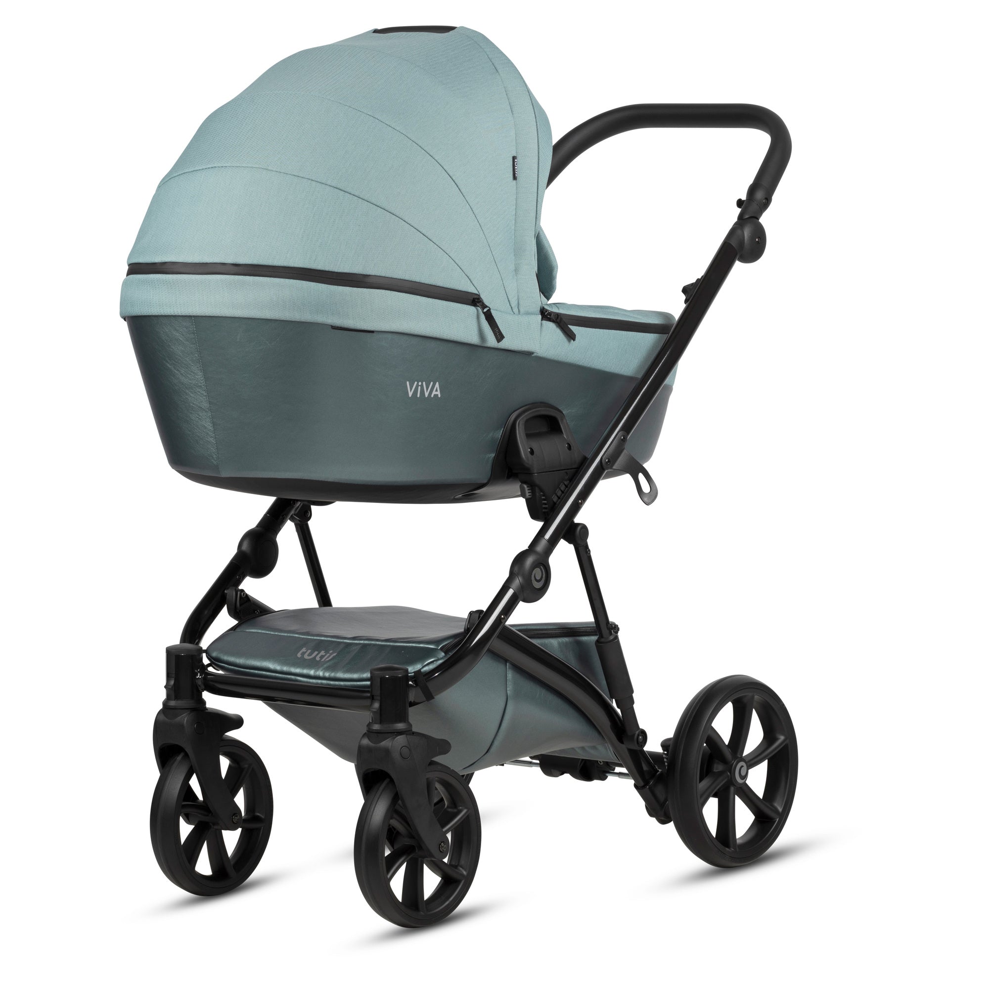 Naujoji Viva 5+ važiuoklė išsiskiria savo manevringumu bei stabilumu. Važiuoklės rėmo struktūra leidžia atnaujintam Tutis Viva 5+ vežimėliui būti kompaktiškesniam, išlaikant išskirtines lengvumo, tvirtumo charakteristikas.