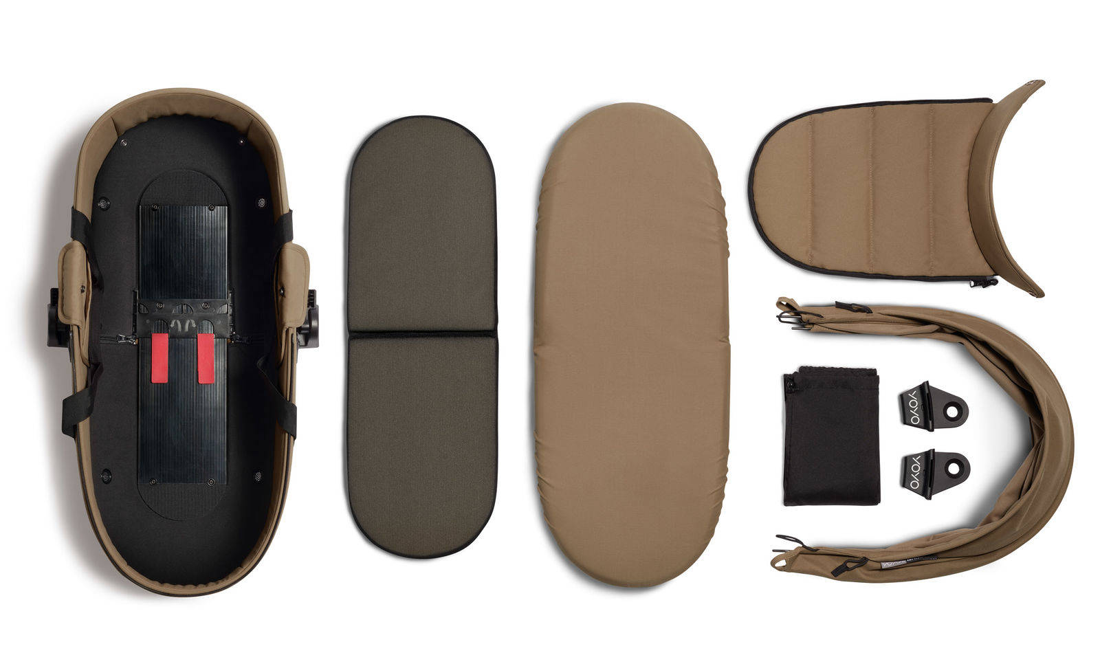 Itin lengva, pusiau kieta „YOYO“ rankinė yra ant vežimėlio rėmo viršaus, todėl galite būti ypač arti savo naujagimio. Apvyniotas apsauginiu kokonu jūsų mažylis bus saugiai parnešamas į namus. Ilgi pasivaikščiojimai ant kvėpuojančio dvigubo čiužinio bus itin patogūs. Kad būtų lengva transportuoti, „YOYO²“ rėmą galima sulankstyti ir nešioti per petį, kai nešate krepšį.