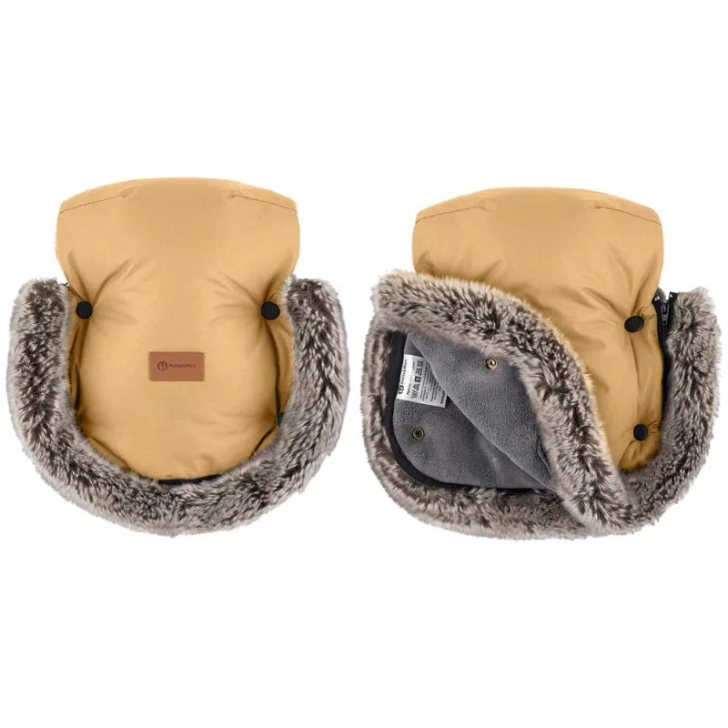 Šiltos pirštinės - puikios žiemos pasivaikščiojimų kompanionės, todėl net ir šalčiausios dienos bus malonios. Dėl dviejų atskirų dalių jas galima lengvai pritvirtinti prie bet kokio modelio vežimėlio, nesvarbu, ar tai būtų vežimėlis su pritvirtinta rankena, ar vežimėlis su sulankstomu mechanizmu ant rankenos, ar skėčio tipo vežimėlis su atskiromis rankenomis. Be to, vandeniui atspari apdaila veiksmingai apsaugo nuo sniego ir nedidelio lietaus, o šiltas kailis - nuo šalto vėjo.
