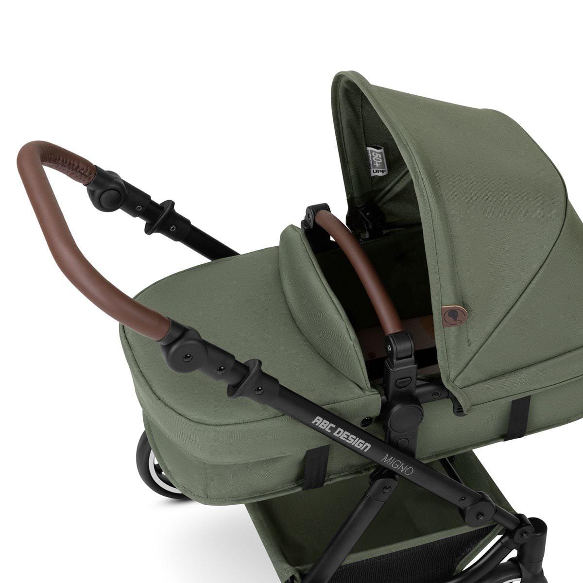 ABC Design Migno yra toks pat geras, kaip ir didžiųjų vežimėlių versijos, tiek savo kokybe, tiek funkcionalumu, siūlantis viską, ko gali norėti vaikas. Lėlės vežimėlis yra labai populiarus dėl savo stilingo dizaino, kaip ir didesni modeliai. Stūmimo rankena ir buomelis turi aukštos kokybės dirbtinės odos rankenas. Su stilingu vežimėlio aliuminio rėmu jūsų vaikas tiesiog diktuos madą. Išmanieji baltos spalvos ratukai suteikia lėlės vežimėliui įspūdingą ir elegantišką išvaizdą. Dėl besisukančių priekinių ratų šį stilingą lėlių vežimėlį vairuoti yra grynų gryniausias "vaikų žaidimas". Atlenkiamą stūmimo rankeną galite pritaikyti pagal individualius vaiko poreikius. Tai ypač svarbu norint užtikrinti patogų ir sveiką stūmimo patirtį. Galite tiesiog užmontuoti lopšį ant madingo rėmo – kaip ir standartinius vaikų vežimėlius iš ABC Design. Kai lėlytė "paaugs", lopšį galėsite pakeisti į sportinę vežimėlio sėdynę. Lengvai nuimamas lėlių vežimėlio buomelis. Tai leidžia lengvai iškelti lėlytę iš vežimėlio. Vežimėlio sportinė sėdynė ir lopšys gali būti pritvirtinti ir nukreipti į važiavimo kryptį, arba lėlei žiūrint į mamą ar tėtį. Idealiai tinka nuotykiams: dideliame pirkinių krepšelyje yra pakankamai vietos lėlės daiktams ar apsipirkti. Galite lengvai sulankstyti lėlės vežimėlį gabenimui.