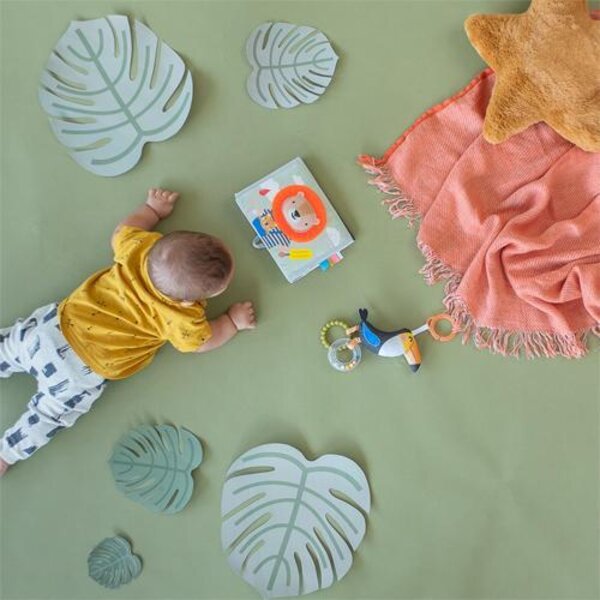 2 pusė: sodrios spalvos, tekstūros ir 3D veikla, įskaitant liūto karčius, kurie atstoja kramtuką, kad lavintų kūdikio smulkiąją motoriką.