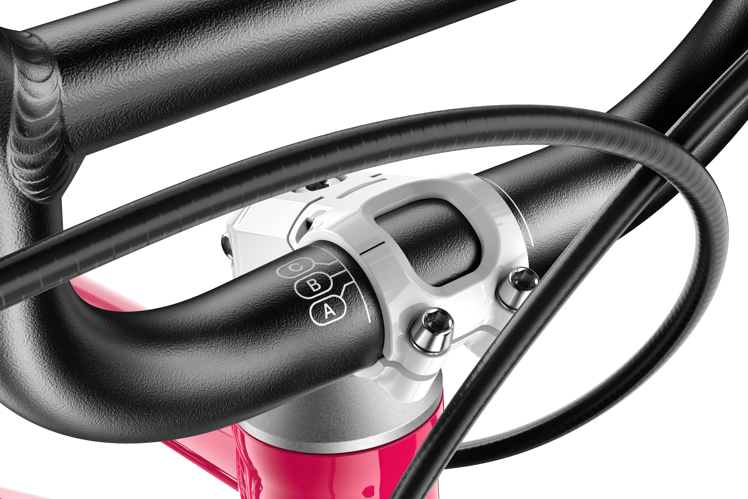 Vairo iškiša užtikrina saugų ir lengvą jungtį tarp vairo ir rėmo. Dėl savo aptakaus, suapvalinto dizaino vairo sistema yra draugiška vaiko ergonomikai.