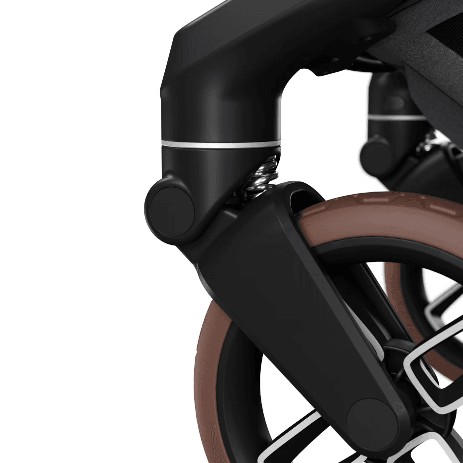 Intuityvi stabdžių sistema leidžia visiškai valdyti vežimėlį nesubraižant mėgstamų batų ir nesužeidžiant kojų pirštų
