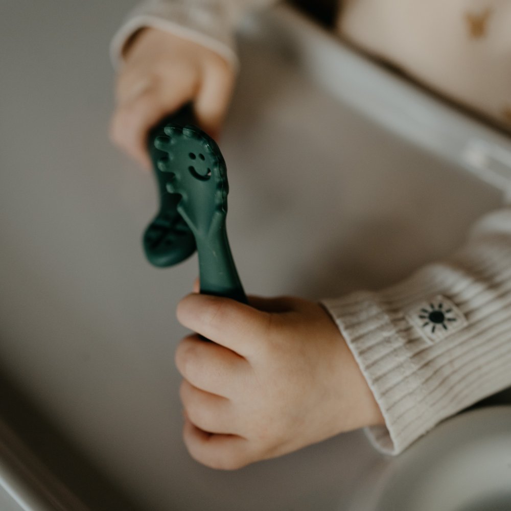 - TAKE&MATCH silikoninių šaukštelių rinkinys 3 vnt. Šaukštelių rinkinys, susidedantis iš trijų šaukštelių, leidžia jūsų vaikui atrasti valgymo džiaugsmą. Kiekvienas šaukštelis yra kruopščiai sukurtas, kad valgymas jūsų vaikui būtų tobulas. Rinkinyje yra sriubos šaukštas, šaukštas su išsikišimais, kad būtų lengva suimti makaronus, ir panardinimo šaukštas, idealiai tinkantis jogurtams ar putėsiams. Kai kurie rinkinio šaukštai turi subtilias skylutes, kurios leidžia kontroliuoti maistą. Dėl to vaikas gali išmokti valgyti savarankiškai, tyrinėdamas įvairias formas ir tekstūras, o tai stimuliuoja jo pojūčius ir lavina jutimo įgūdžius. Šis rinkinys yra ne tik priemonė, bet ir džiaugsmo šaltinis, kuris jūsų vaiko kasdienį maistą pavers malonesniu. Rinkinys pagamintas tik iš maistinio silikono, kuriame nėra BPA. Tai leidžia jūsų vaikui su stalo įrankiais valgyti karštą, šaltą ir įvairios konsistencijos maistą. Dėl lankstaus silikono šaukštai idealiai tinka jautrioms mažo vaiko dantenoms. Šaukšteliai tinka kūdikiams nuo 6 mėnesių amžiaus, kuriems pradedama praplėsti mityba, ir tiems, kurie jau sėkmingai mokosi valgyti savarankiškai. Dėl apvalių formų ir mažų dydžių mažyliui lengviau juos paimti ir valgyti. Šaukštai gali būti derinami su kitu gaminiu iš TAKE&MATCH asortimento tos pačios arba derančios spalvų gamos.